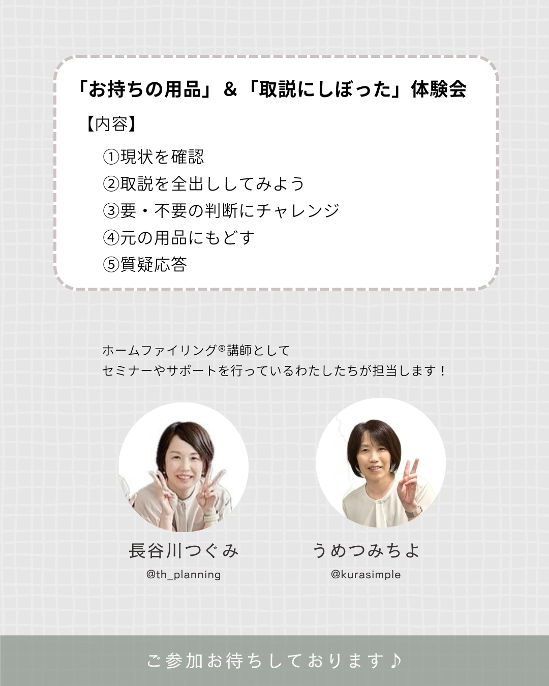 これは月一開催している「一緒にお片づけ会」もおなじ!
